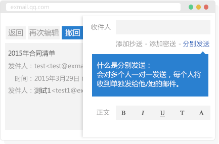 发送功能,收件人只能看到自己的地址,兼顾效